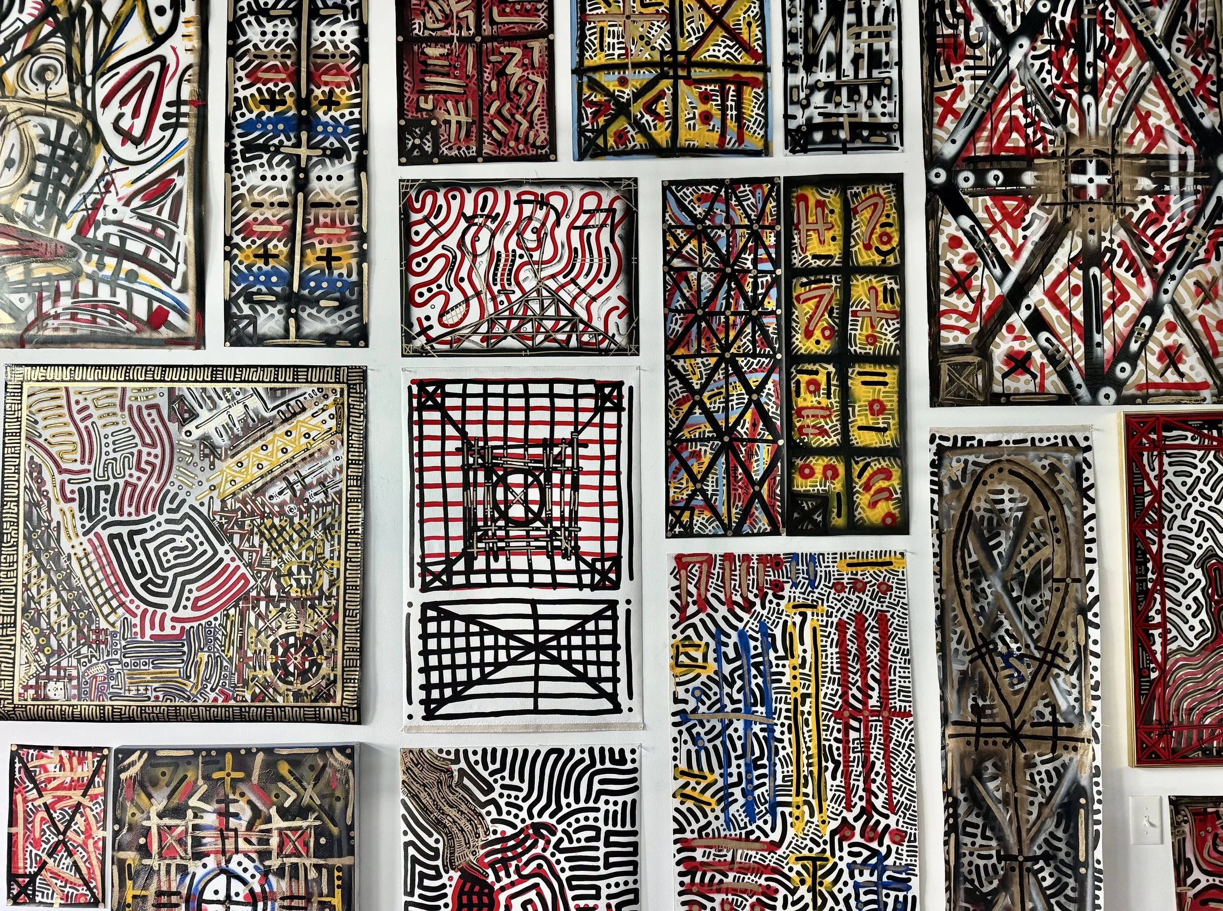 What started as 1 painting (#001 = SCROLL1) turned into 100 paintings over the course of 2 months. For the first time in 8 years of painting, I started working with color as it became an accurate and efficient vehicle to express deep emotions that expand beyond both language and the limitations of black and white paint.