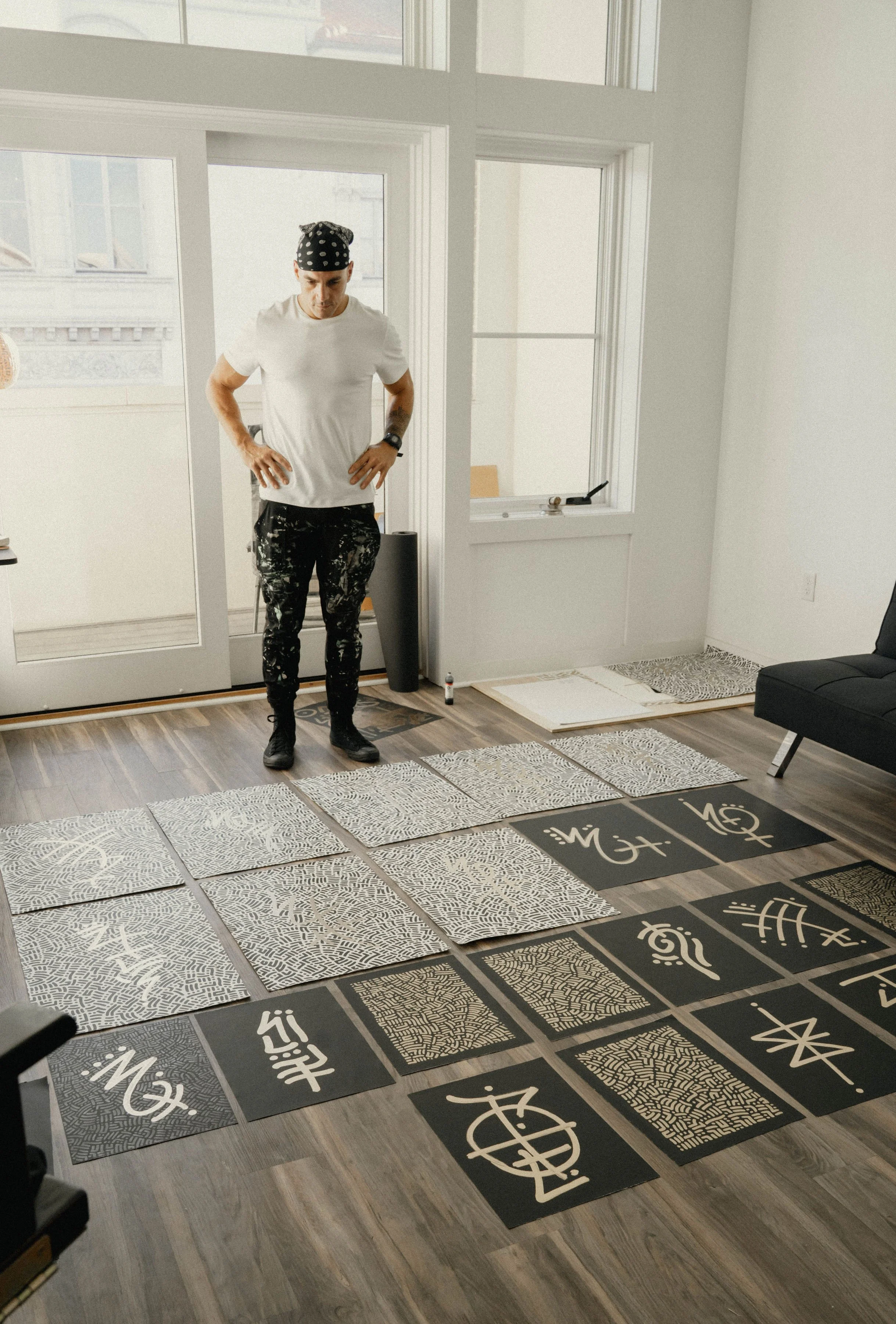 “THE_CODE_OF_RA” is a system of points, lines and numerals that follow a set of rules or “code” which allows the pattern to go on infinitely without repeating. This unique pattern balances the chaotic nature of creativity with the structural order of a grid and code to create an infinite design that makes each piece completely unique and 1 of a kind.